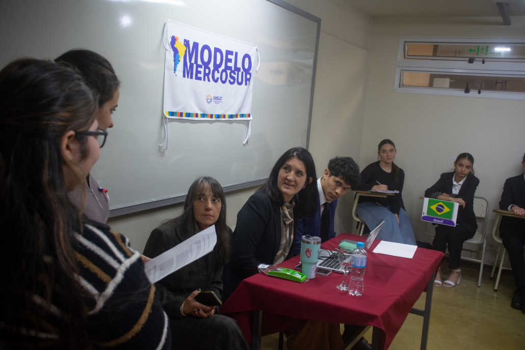 Durante todo el día, los jóvenes asumieron el rol de representantes de distintos países miembros del Mercosur, poniendo a prueba sus habilidades de oratoria, negociación, análisis y pensamiento crítico. En un entorno académico que recreó la dinámica del bloque regional, debatieron, construyeron consensos y buscaron acuerdos sobre temas clave para la integración sudamericana.