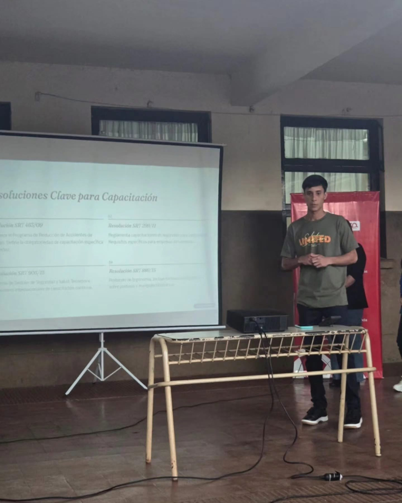 - 2º año: Exposición de Capacitación y Oratoria sobre Seguridad e Higiene Laboral, abordando normativas vigentes y defendiendo las propuestas elaboradas.