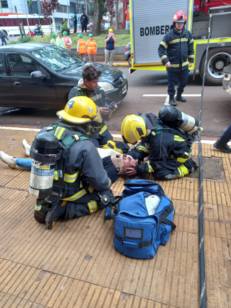 La práctica estuvo a cargo de los estudiantes del tercer año de la Tecnicatura Superior en Seguridad e Higiene Laboral y contó con la colaboración de Bomberos Voluntarios, la Municipalidad y la Policía.