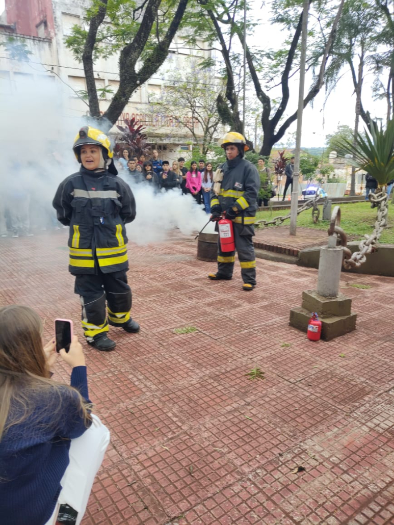El Instituto Saavedra agradece profundamente la colaboración de las instituciones que acompañaron la jornada: los Bomberos Voluntarios de Oberá, con la participación del Sgto. Matías Juskuf, quien brindó una charla sobre el uso de extintores, junto a Sgto. César Fischer, BV Miriam Langi, BV Sebastián Bernal, BV Richard De Lima, BV Yanina Fernández y BV Sol Machado; la División de Tránsito de la Municipalidad de Oberá, representada por Sandra Soanes, Andrea Ayala, Lorena Cardozo, Patricia Lundin, Alejandro Goinis, Marcos Rodríguez y Paola Domino, quienes realizaron tareas de corte y reorganización del tránsito; y la División de Prevención de Delitos de la Policía de Misiones, con la presencia de Agt. Martín De Olivera, Agt. Sandro Suárez, Cabo 1º Mariela Smolski, Agt. Luis Gamarra y Agt. Sebastián Olivera.