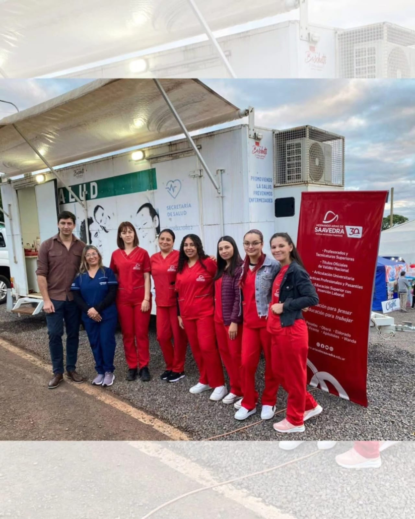 Estudiantes de la Tecnicatura Superior en Enfermería del Instituto Saavedra participaron activamente en la Fiesta Nacional de la Madera en San Vicente, acompañando al equipo de Atención Primaria de la Salud (APS) y al Centro Integrador Comunitario (CIC) en tareas de prevención, control y asistencia durante el evento.