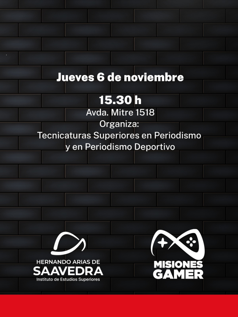 El próximo jueves 6 de noviembre a las 15.30 h, el Instituto de Estudios Superiores Hernando Arias de Saavedra invita a participar de “Streaming – Edición e-sports | Periodistas y Casters”, una experiencia educativa y profesional abierta al público que se realizará en Av. Mitre 1518, Posadas.
